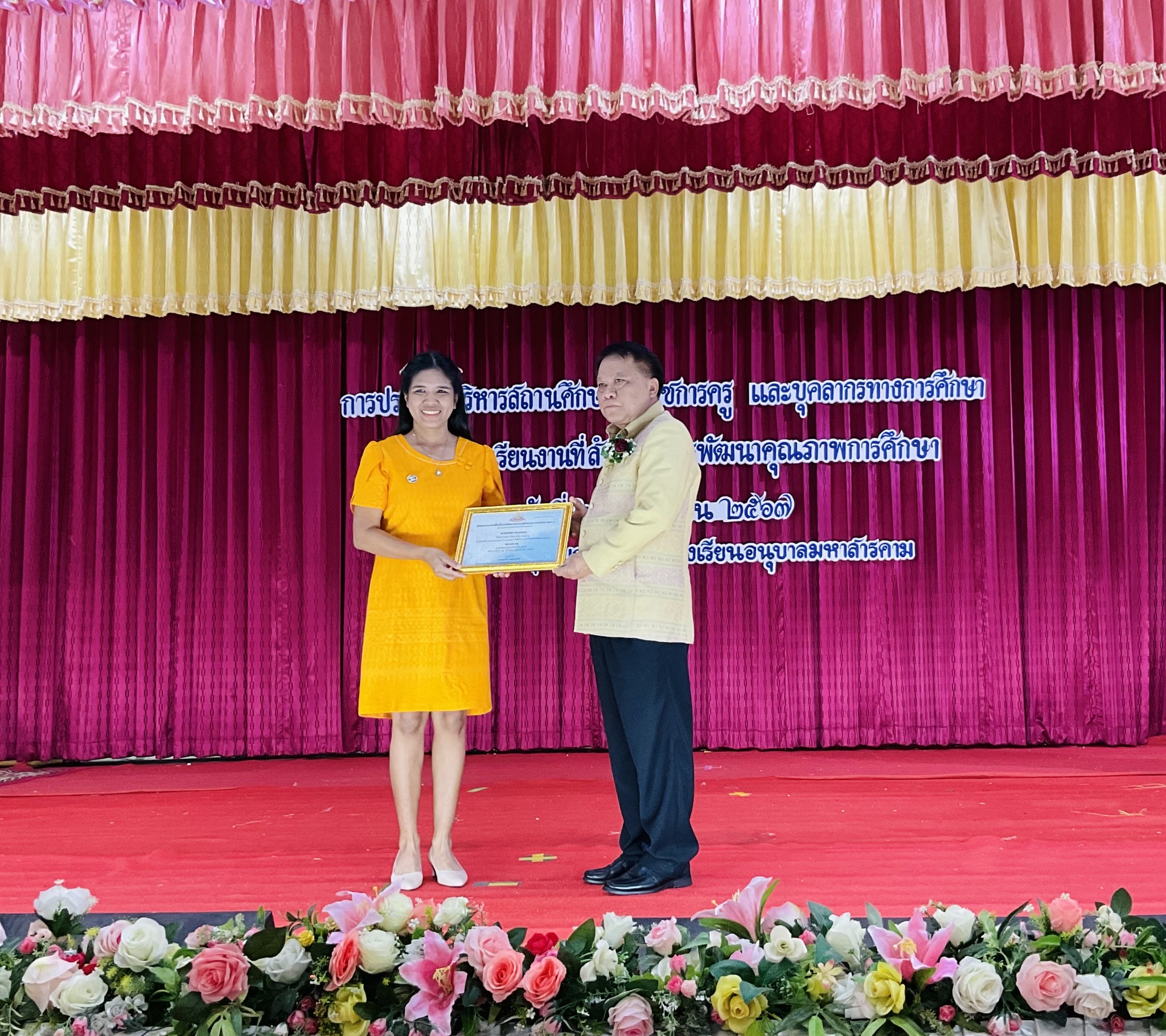 วันที่ 24 กันยายน 2567 นางณัฏฐลักษณ์ จันทรศรีสกุล ผู้อำนวยการโรงเรียนบ้านโคกกลางบ่อหลุบ ได้เข้าร่วมการประชุม ผู้บริหารสถานศึกษา ครั้งที่ 6 ณ ห้องประชุม เบญจบงกช โรงเรียนอนุบาลมหาสารคาม จังหวัดมหาสารคาม โดยได้เข้ารับรางวัล สถานศึกษาปลอดยาเสพติด และอบายมุข “ระดับทอง” พร้อมด้วยนางสาววรรณธณี ศรีกะกูล ครูผู้รับผิดชอบโครงการ และนางนิตยา ดวงพรม เข้ารับรางวัล ครูดีเด่น ด้าน Coding "COOING Achievement Awards" ครั้งที่ ๓ ระดับเขตพื้นที่การศึกษา ประจำปีการศึกษา ๒๕๖๗